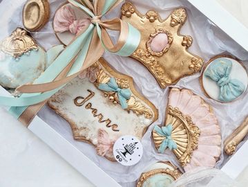 You provide the name, age, theme and colour and II will hand over a beautiful biscuit box that meets your brief.